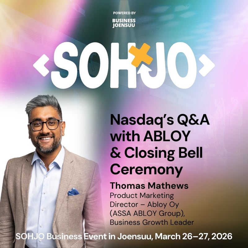 As the grand finale to the session, Thomas and Erja take the spotlight together for something truly rare in the Nordics: the iconic Nasdaq Closing Bell Ceremony, performed live at SOHJO. More than just a bell – it’s a symbol of partnership, ambition and the global potential of the Joensuu business ecosystem.